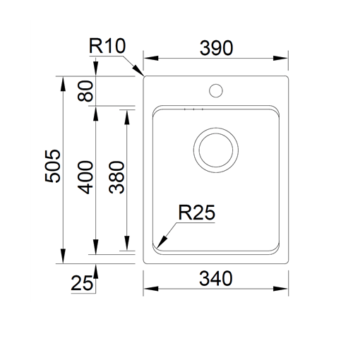 • Altaan mitat: 340 × 400 mm