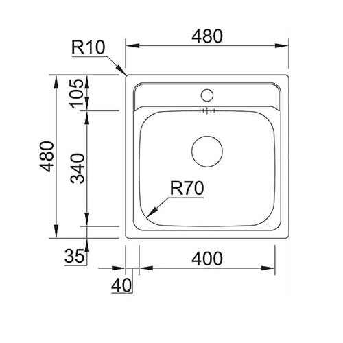 - Ulkomitat: 480 × 480 mm