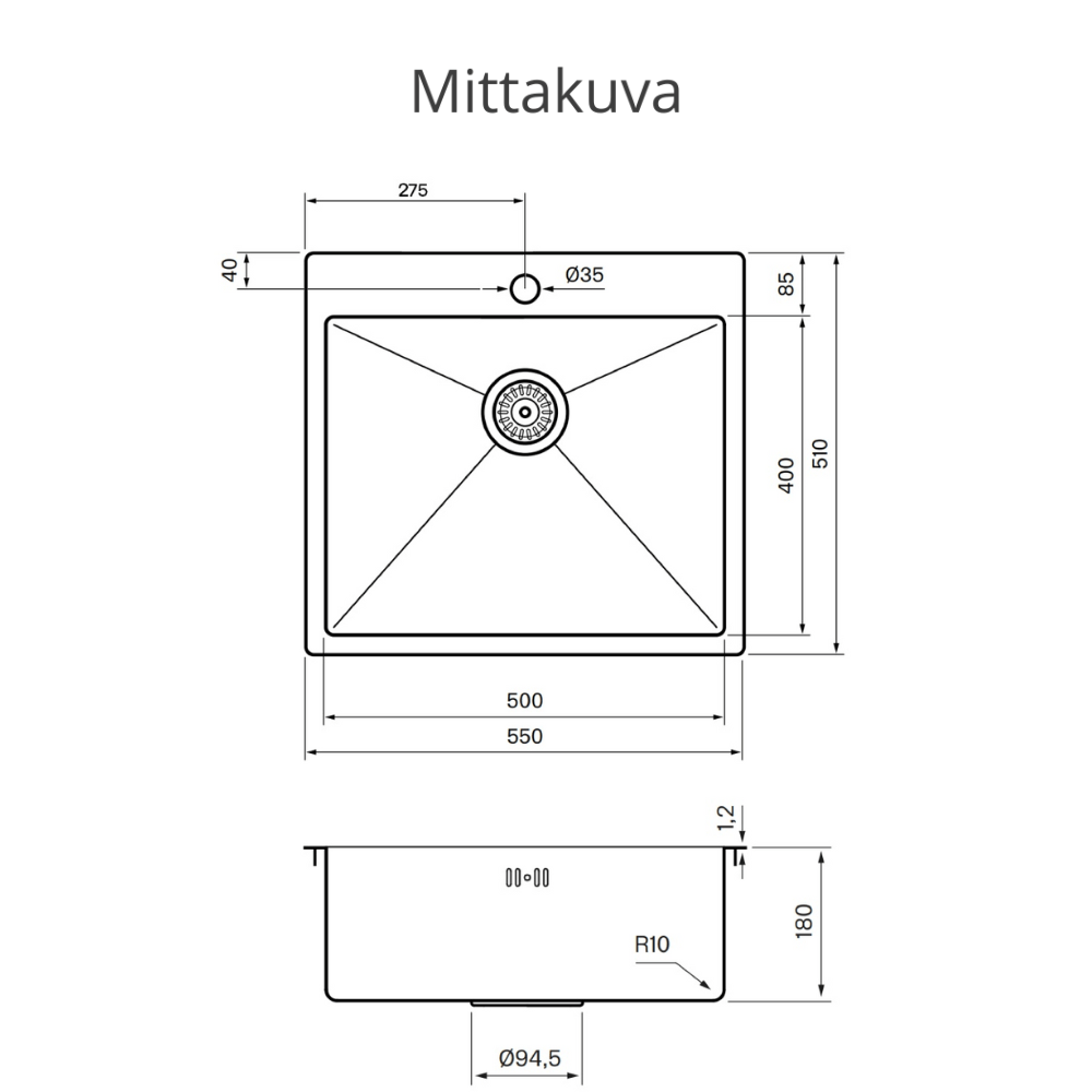 Tämä tiskiallas on yhteensopiva useimpien keittiökalusteiden ja työtasojen kanssa, mikä helpottaa sen integroimista olemassa oleviin keittiöihin. Monipuoliset mittavaihtoehdot tekevät siitä sopivan erilaisiin tiloihin, olipa kyseessä pieni tai suuri keittiö. Allas sopii kaikkiin asennustapoihin; upotus, huullos- sekä alta-asennus. Paketti sisältää koripohjaventtiilin, vesilukon sekä ylivuotosuojan.