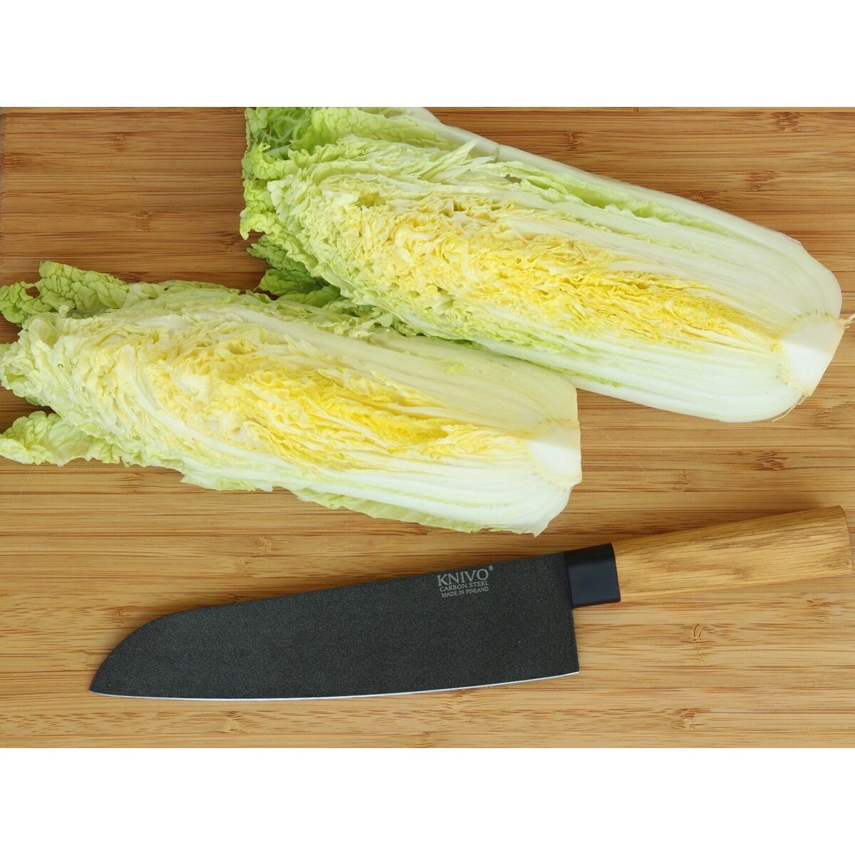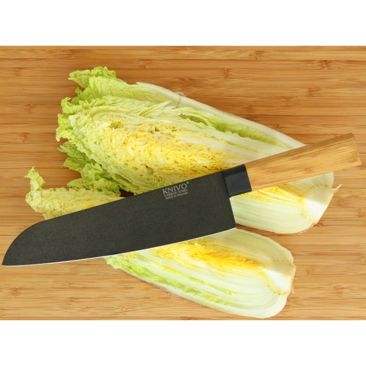 Vaativaan käyttöön muotoiltu KNIVO® tekee hiiliteräksestä helppohoitoista: terää suojaava PTFE-pinnoite säästää öljyämisen vaivan ja pysyy puhtaana kuin itsestään – huuhtelu käytön jälkeen riittää.