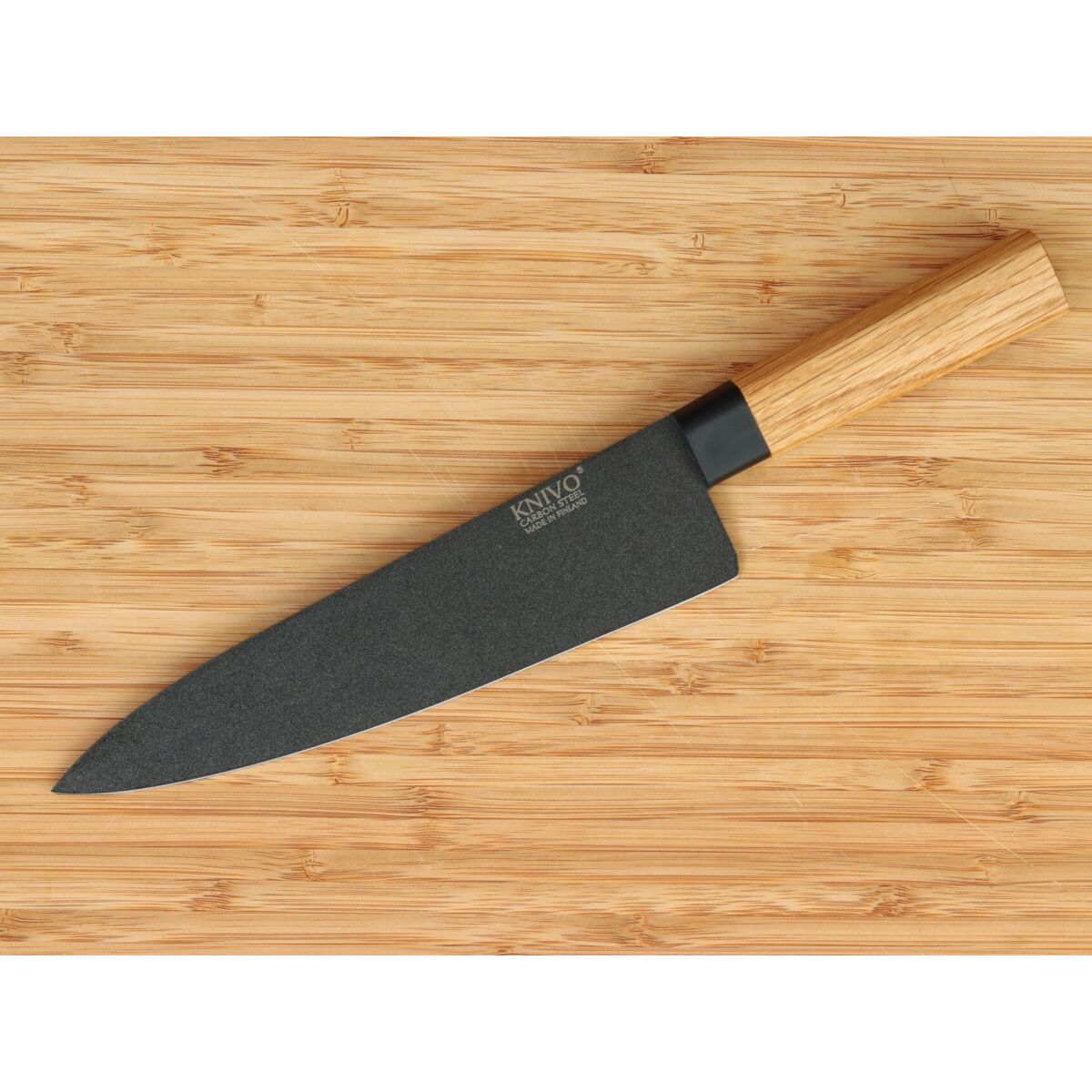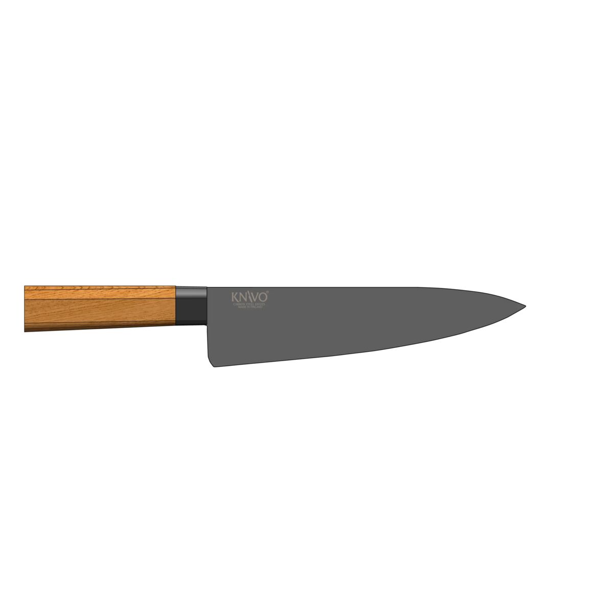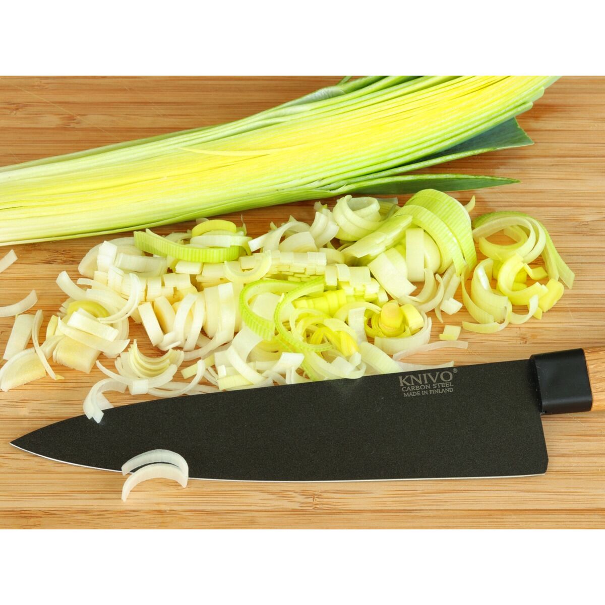 Vaativaan käyttöön muotoiltu KNIVO® tekee hiiliteräksestä helppohoitoista: terää suojaava PTFE-pinnoite säästää öljyämisen vaivan ja pysyy puhtaana kuin itsestään – huuhtelu käytön jälkeen riittää.