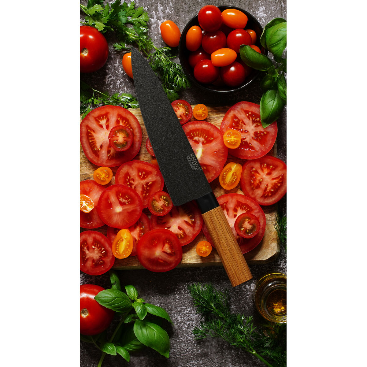 KNIVOjen hiiliteräs on lisäksi suojattu kestävällä ja likaa hylkivällä hygienia sertifioidulla ptfe-pinnoitteella. Terä leikkaa huipputarkasti ja veitsi on helppo puhdistaaa pelkällä vedellä.