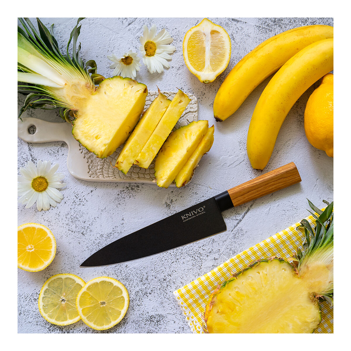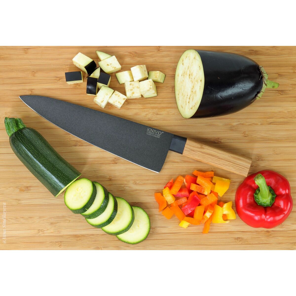 KNIVOjen hiiliteräs on lisäksi suojattu kestävällä ja likaa hylkivällä hygienia sertifioidulla ptfe-pinnoitteella. Terä leikkaa huipputarkasti ja veitsi on helppo puhdistaaa pelkällä vedellä.