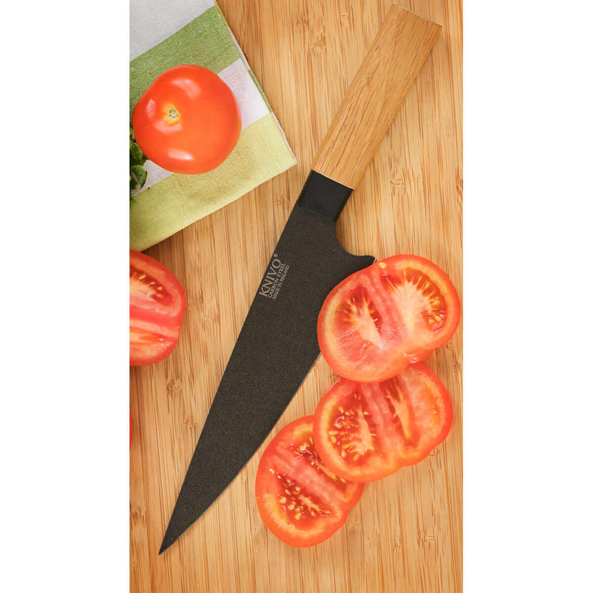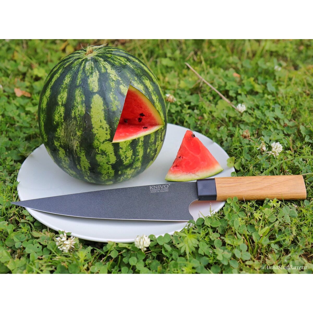 KNIVOjen hiiliteräs on lisäksi suojattu kestävällä ja likaa hylkivällä hygienia sertifioidulla ptfe-pinnoitteella. Terä leikkaa huipputarkasti ja veitsi on helppo puhdistaaa pelkällä vedellä.