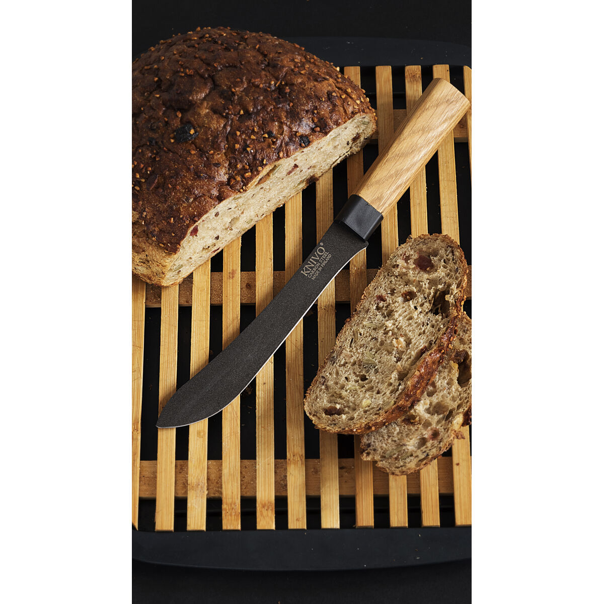 Vaativaan käyttöön muotoiltu KNIVO® tekee hiiliteräksestä helppohoitoista: terää suojaava PTFE-pinnoite säästää öljyämisen vaivan ja pysyy puhtaana kuin itsestään – huuhtelu käytön jälkeen riittää.
