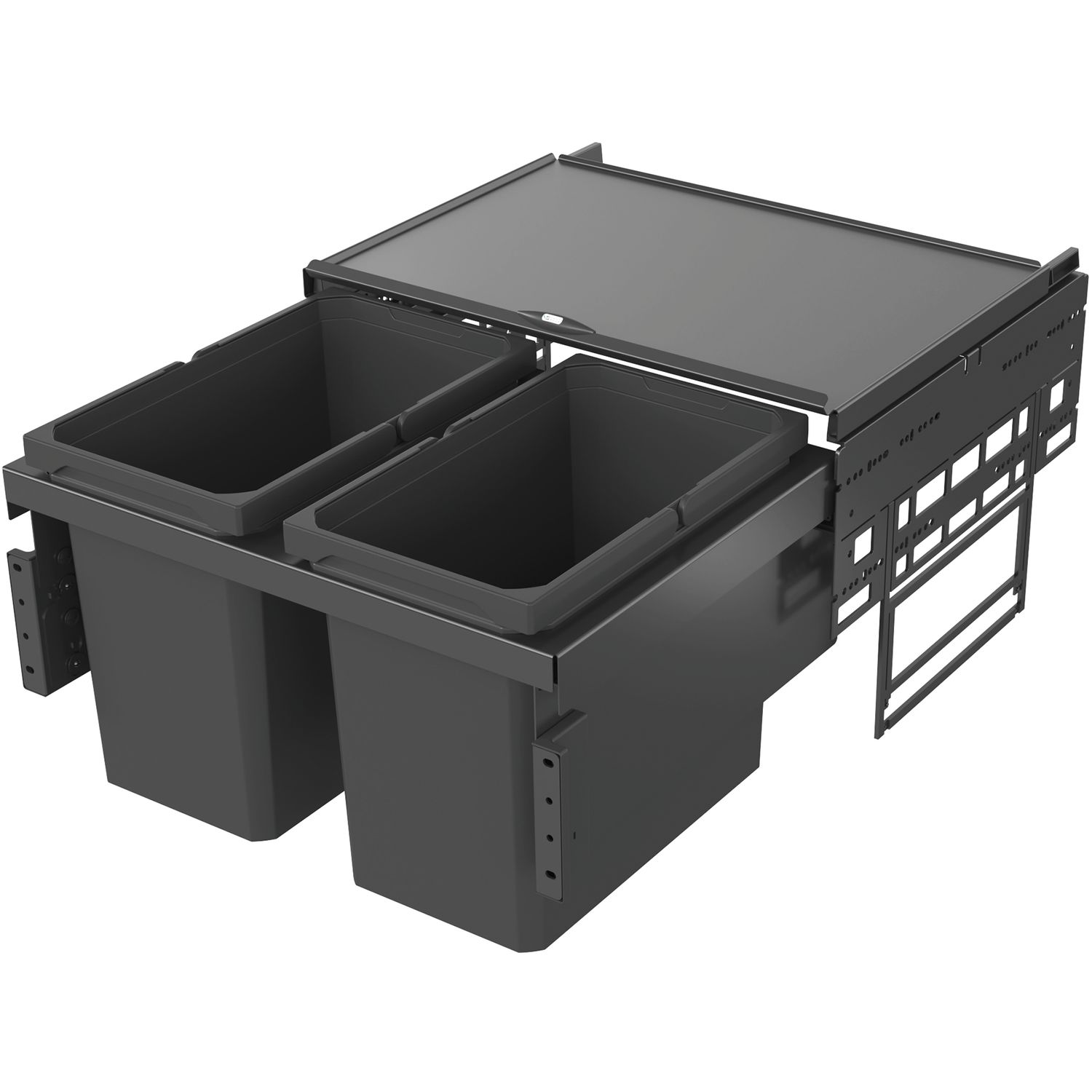 VS ENVI® SPACE -järjestelmässä on 100 % ulosliukuva mekanismi, joka tekee jätteiden käsittelystä vaivatonta. Lisäksi mekanismi on varustettu pehmeällä Soft-Close-hidastimella, joka takaa hiljaisen ja sulavan sulkeutumisen jokaisella käyttökerralla. Järjestelmän teräksinen kansilevy toimii myös liukuhyllynä, tarjoten lisää säilytystilaa keittiöön.