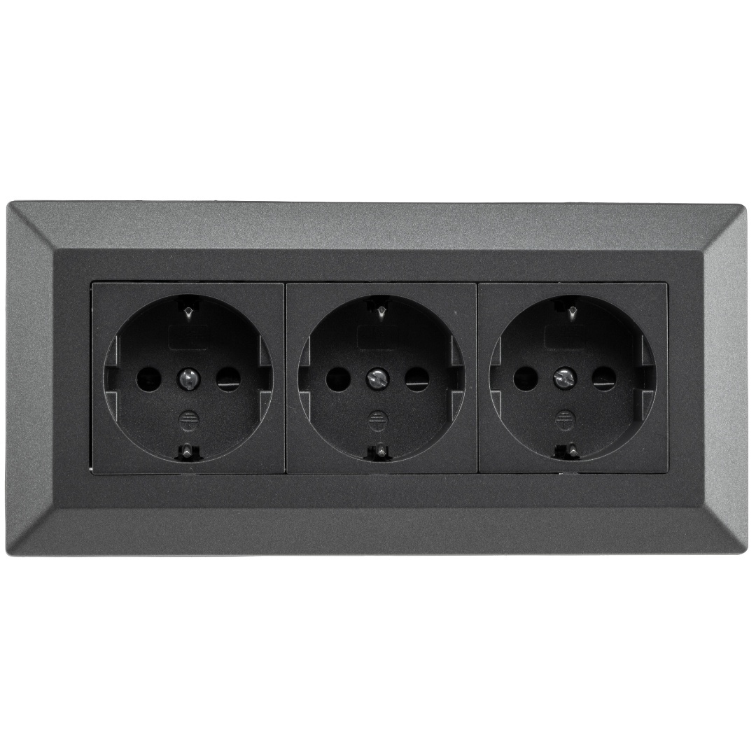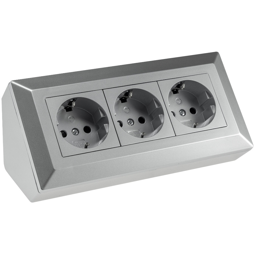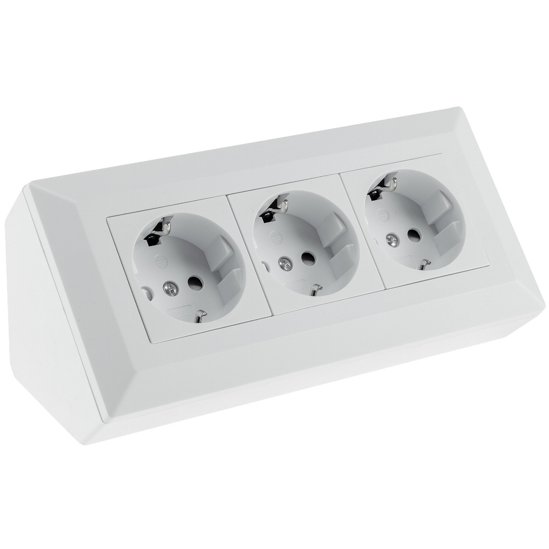 Ergonominen 45° asennuskulma tekee pistokkeiden liittämisestä vaivatonta myös ahtaissa tiloissa ja ohjaa johdot luontevasti pois työtasolta. Kolme pistorasiapaikkaa (230 V / 50 Hz, max. 16 A) tarjoavat riittävästi liitäntöjä kodin ja työtilan sähkölaitteille.