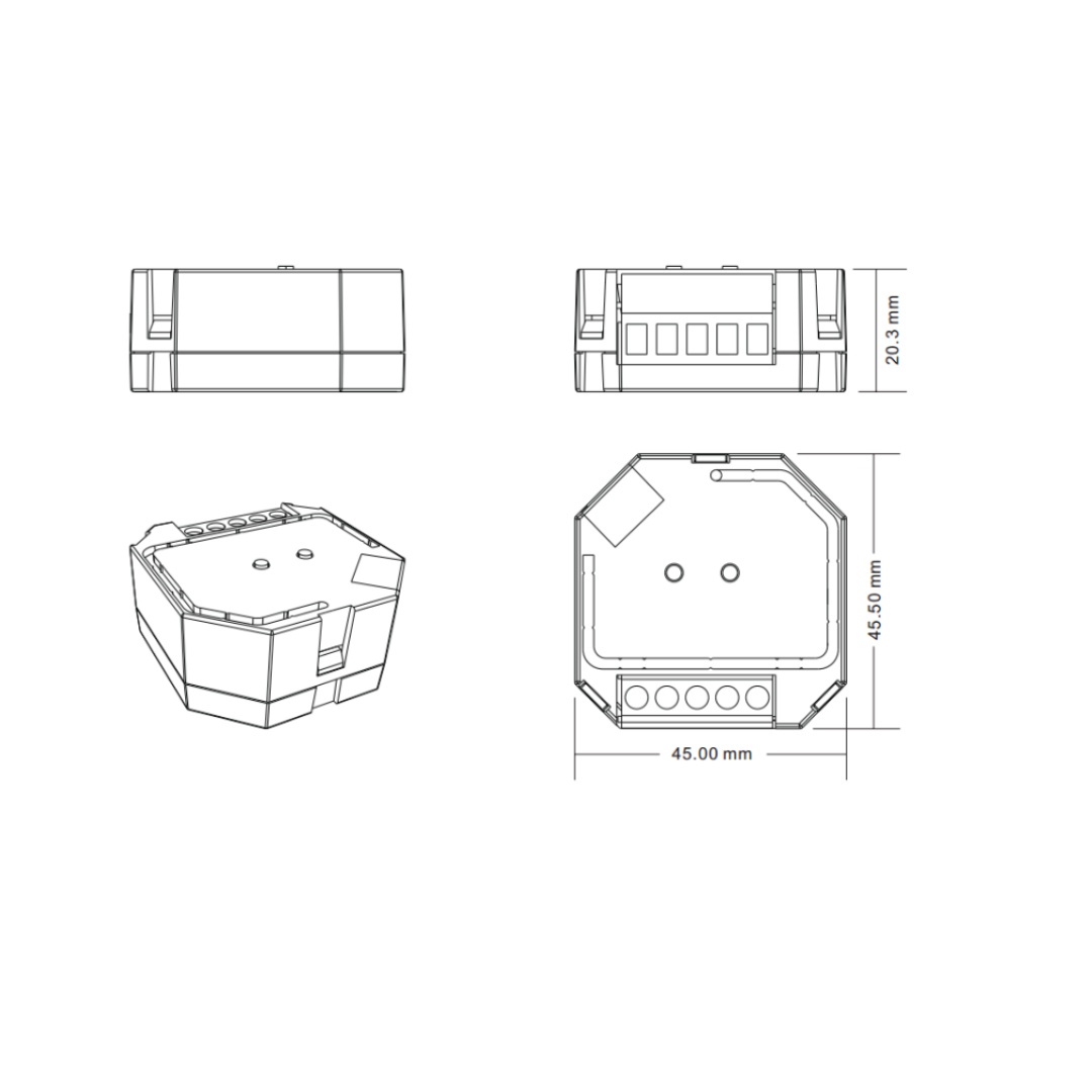 Kompakti ja monipuolinen ratkaisu 230 V valaistuksen langattomaan ja langalliseen himmennykseen.