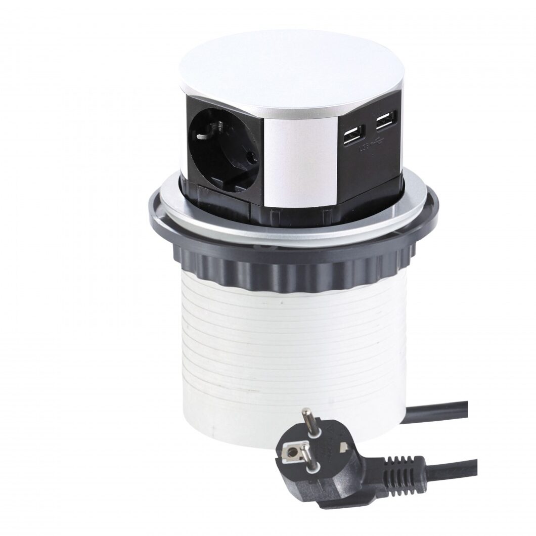 TETRAPOP on tyylikäs ja monikäyttöinen pop up -pistorasia, joka integroidaan suoraan työtasoon, pöytään tai huonekaluun. Se on erinomainen ratkaisu työpisteille, neuvottelutiloihin, keittiöihin tai esimerkiksi sohvan runkoon, kun sähköpiste halutaan piilottaa katseilta.