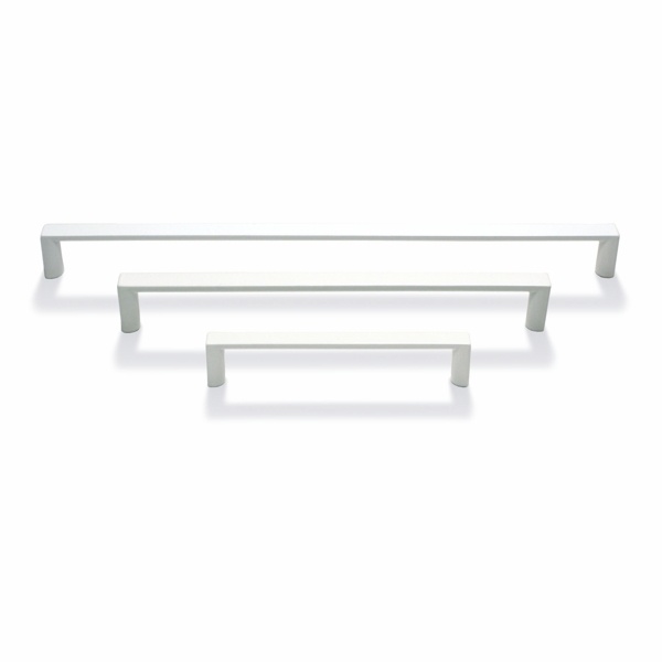 Modernin pelkistetty vedin kiiltävä valkoinen. Suoraviivaisen vetimen leveys on 391 mm, korkeus 12 mm ja syvyys 27 mm. Materiaali pinnoitettu samakki. Ei sovellu integroituihin kylmäkalusteisiin.