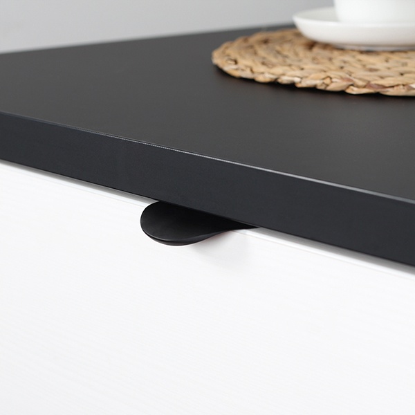 Uutuus! Profiilivedin Rise on kaareva, etureunastaan hieman alaspäin taipuva, takakiinnitteinen alumiinivedin. Vetimen leveys 80mm, väri anodisoitu matta musta. Mitat: 80(L)x45(S)x18(K)mm, reikäjako 64mm.