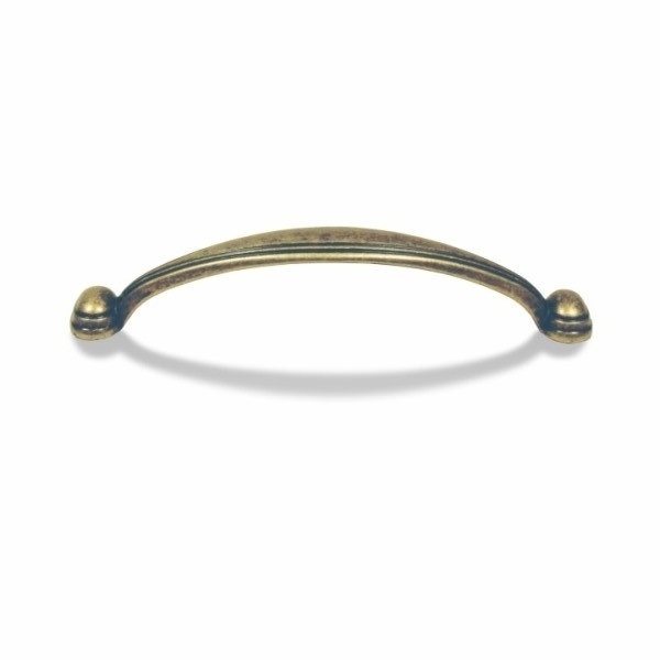 Messinkinen antiikkivedin. Kiinnitysreikien etäisyys 96 mm. Antiikkivetimen leveys on 110 mm, korkeus 17 mm ja syvyys 28 mm. Materiaali pinnoitettu samakki.
