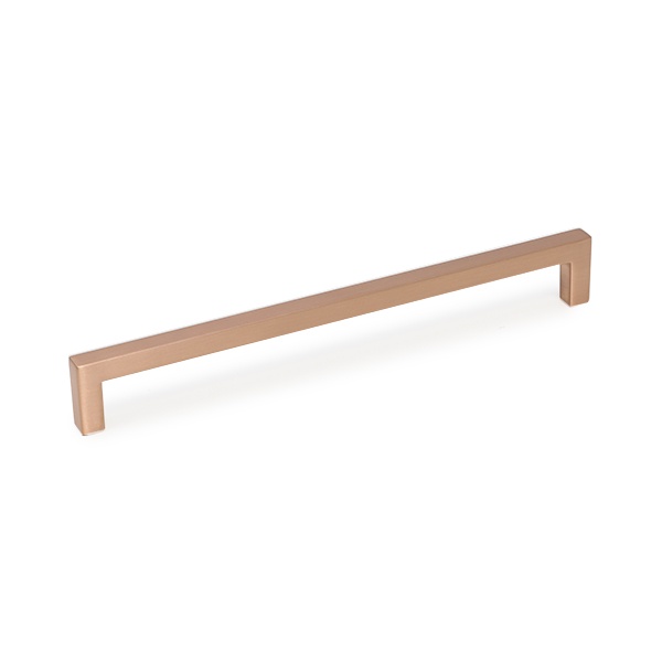 Moderni, selkeälinjainen kalustevedin. Trendikäs harjatun kuparin sävy. Kiinnitysreikien etäisyys 192 mm. Vetimen leveys on 201 mm, korkeus 9 mm ja syvyys 28 mm. Materiaali pinnoitettu samakki.