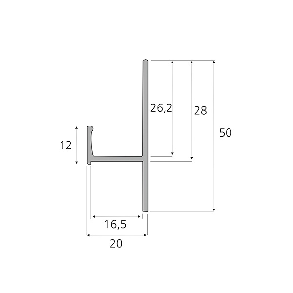 Uusi profiilivedin Norma 16mm levylle. Maalattu musta alumiini. Leveys 995,5mm, kokonaiskorkeus takaa 50mm, 28mm etusarjan/oven päältä, korotus edessä 12mm. Kiinnitetään takaa puuruuveilla.