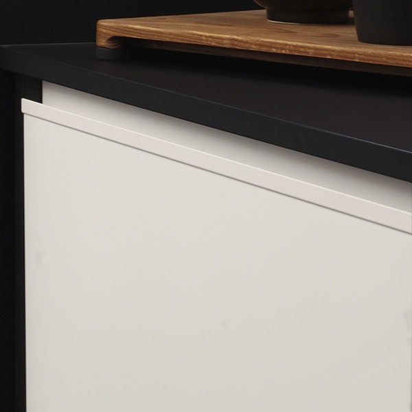 Uusi profiilivedin Norma 18mm levylle. Valkoiseksi maalattu alumiini. Leveys 895,5mm, kokonaiskorkeus takaa 50mm, 28mm etusarjan/oven päältä, korotus edessä 12mm. Kiinnitetään takaa puuruuveilla.