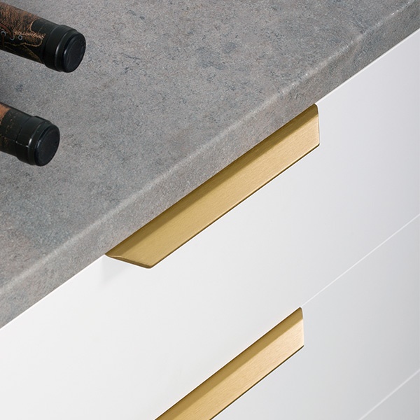 Laatikon etusarjan tai kaapin oven taakse kiinnitettävä lippavedin. Kiinnitysreikien etäisyys 128 mm. Lippavetimen leveys on 200 mm, korkeus 20 mm ja syvyys 44 mm. Sävy tumma messinki. Materiaali alumiini.