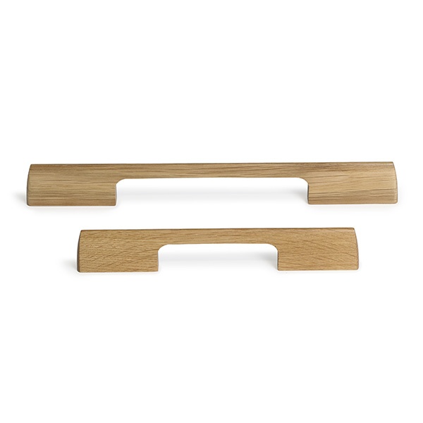 Siro puuvedin lakattua valkotammea. Reikäjako 160mm,leveys 215mm, korkeus 10mm, syvyys 35mm. Muhvit M4 vedinruuvin kierteelle.